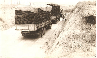 Caminhões de carvão na descida da serra (antiga Curva da Morte) ainda com estrada de terra