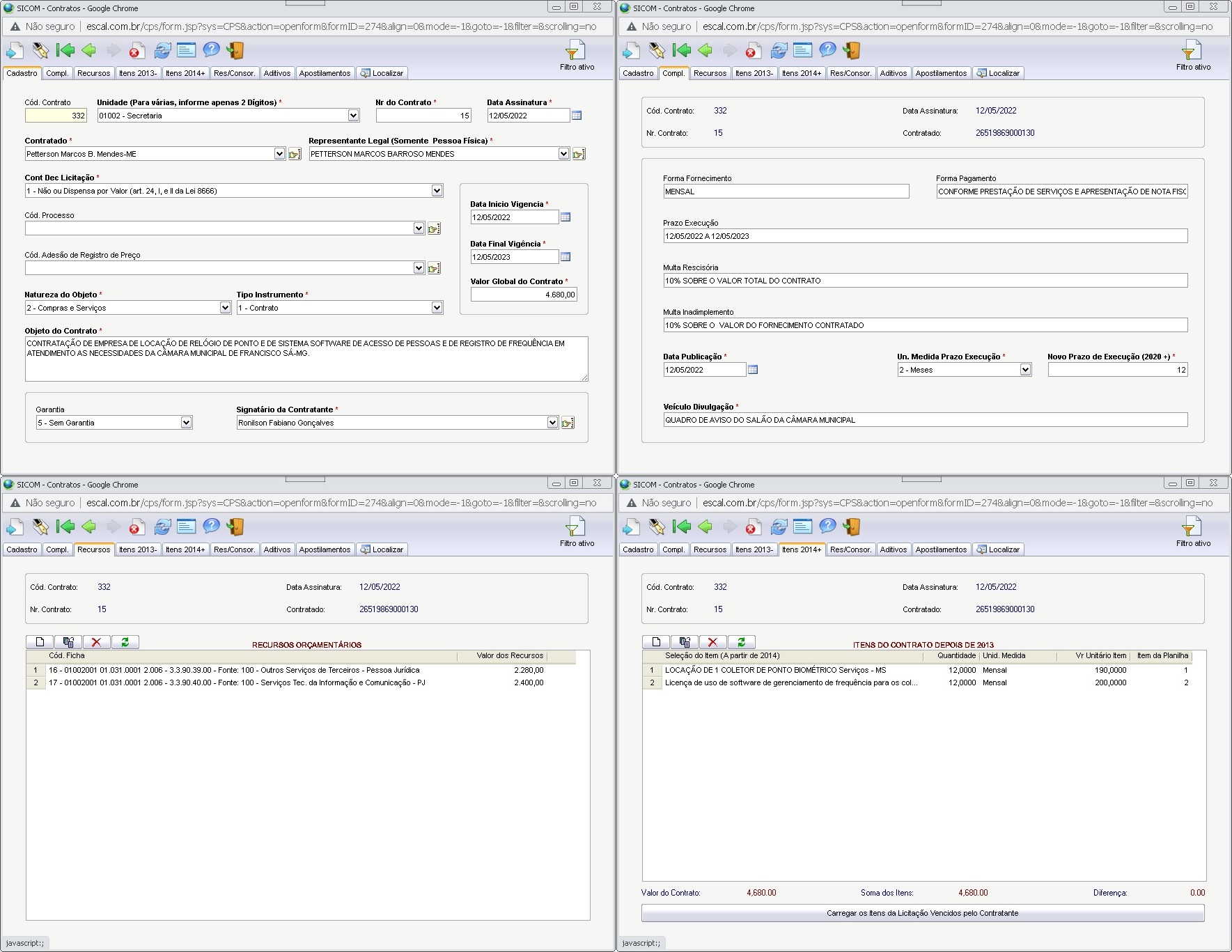Extrato CTR N.º 015/2022 (PL 014/2022 Disp. 013/2022 - Locação do Relógio de Ponto e Software)