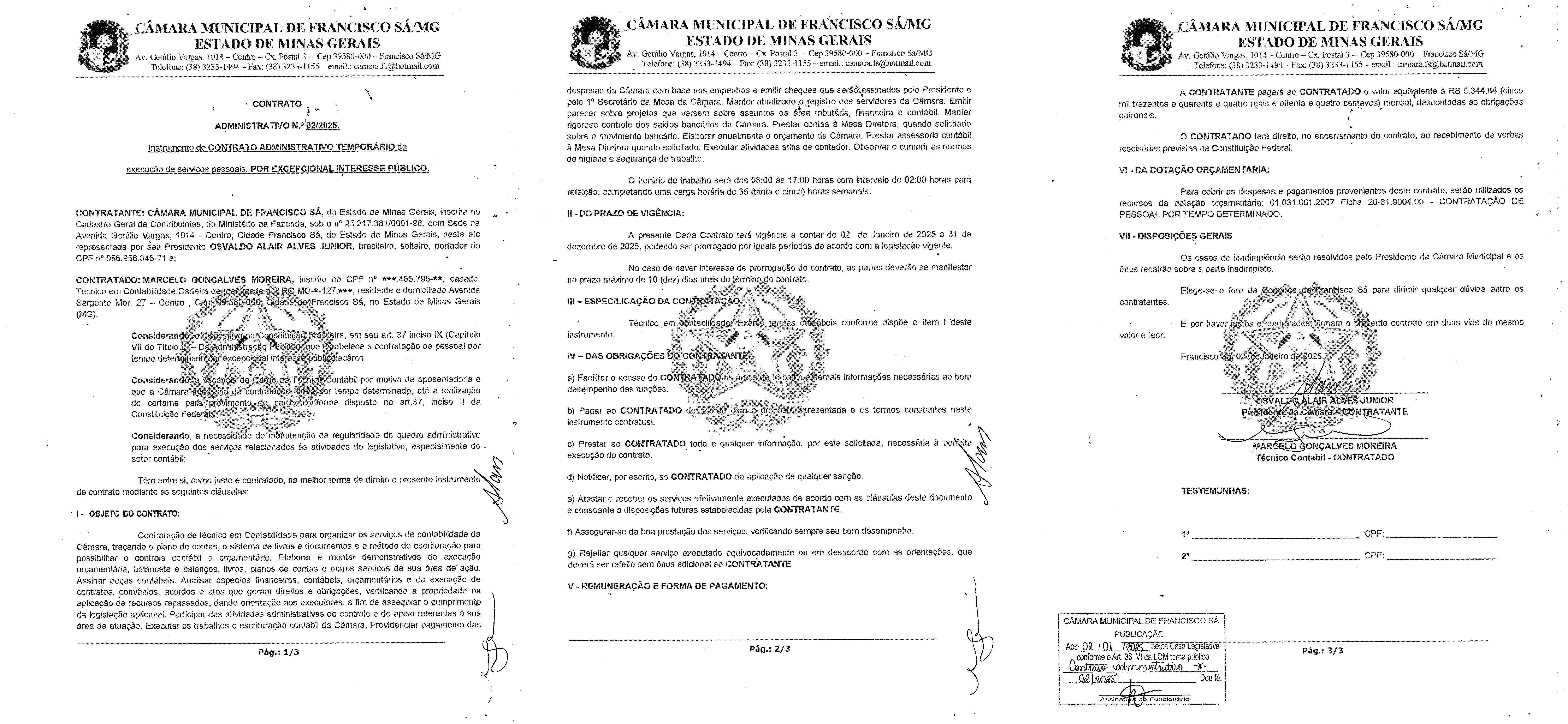 Extrato de Publicação do Contrato ADM. N.º 002/2025 – Contratação Direta - Contratado: Marcelo Gonçalves Moreira.